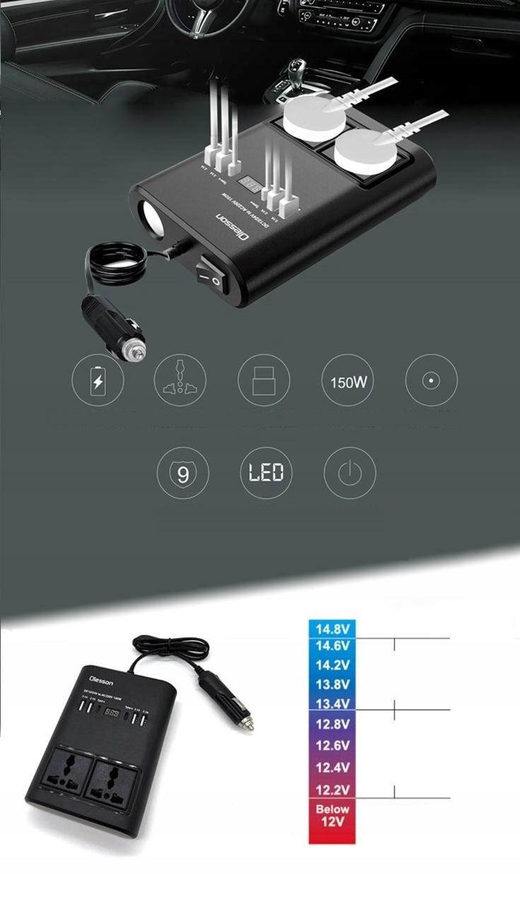 АВТОМОБИЛЬНЫЙ РАСПРЕДЕЛИТЕЛЬ 150ВТ ИНВЕРТЕР НА 220В
