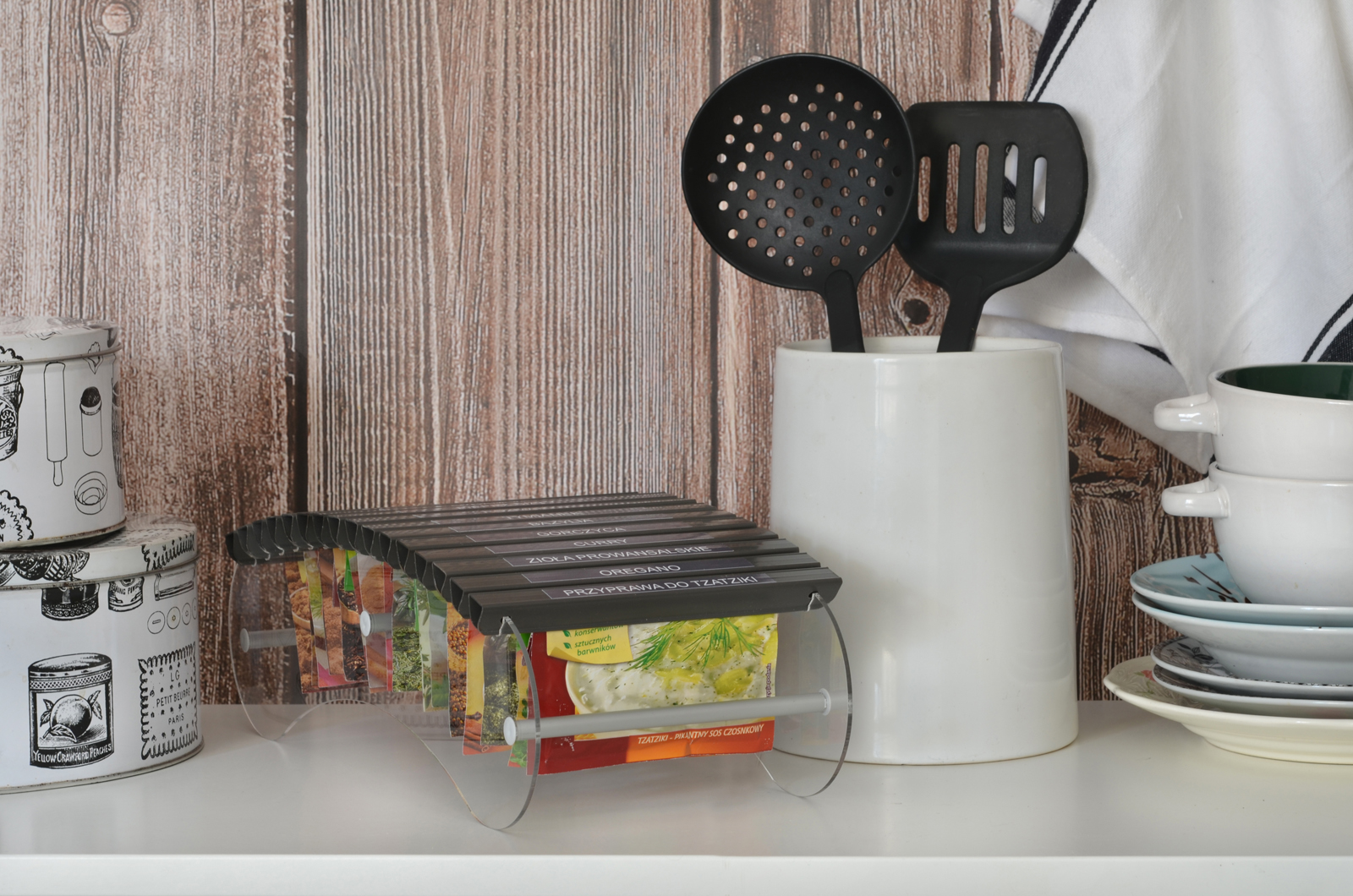 Идея их создания заключалась в том, чтобы занимать как можно меньше места, как можно дольше сохранять свежесть и аромат, а также легко и быстро находить их при приготовлении всевозможных блюд. Органайзер, наполненный красочным содержимым, станет приятным и очень практичным дополнением к любой кухне. В набор входит список наклеек с названиями самых популярных специй и 3 наклейки с возможностью описания любимых трав. Практичные выступы позволяют удерживать пакетик и обеспечивают комфорт, эстетику и предотвращают выветривание трав. Приправа не только прекрасно выглядит, но и гарантирует комфорт и удовольствие при приготовлении блюд.