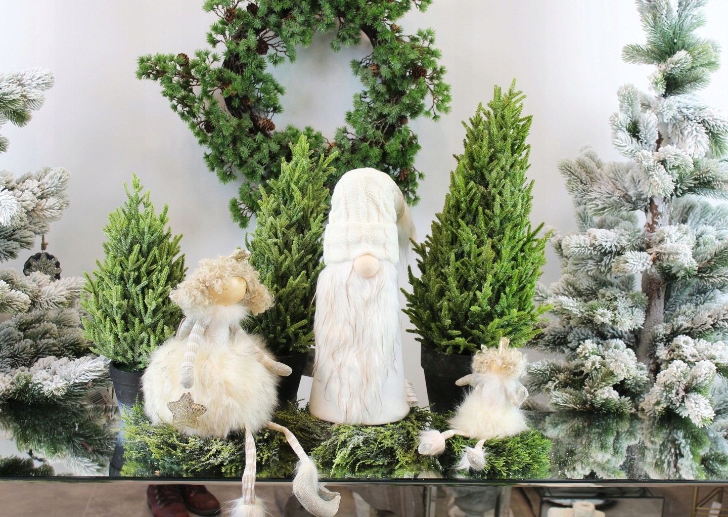 Эта рождественская елка идеально встречается в аранжировках, где правят различные оттенки белого, серого, зеленого и бежевого.