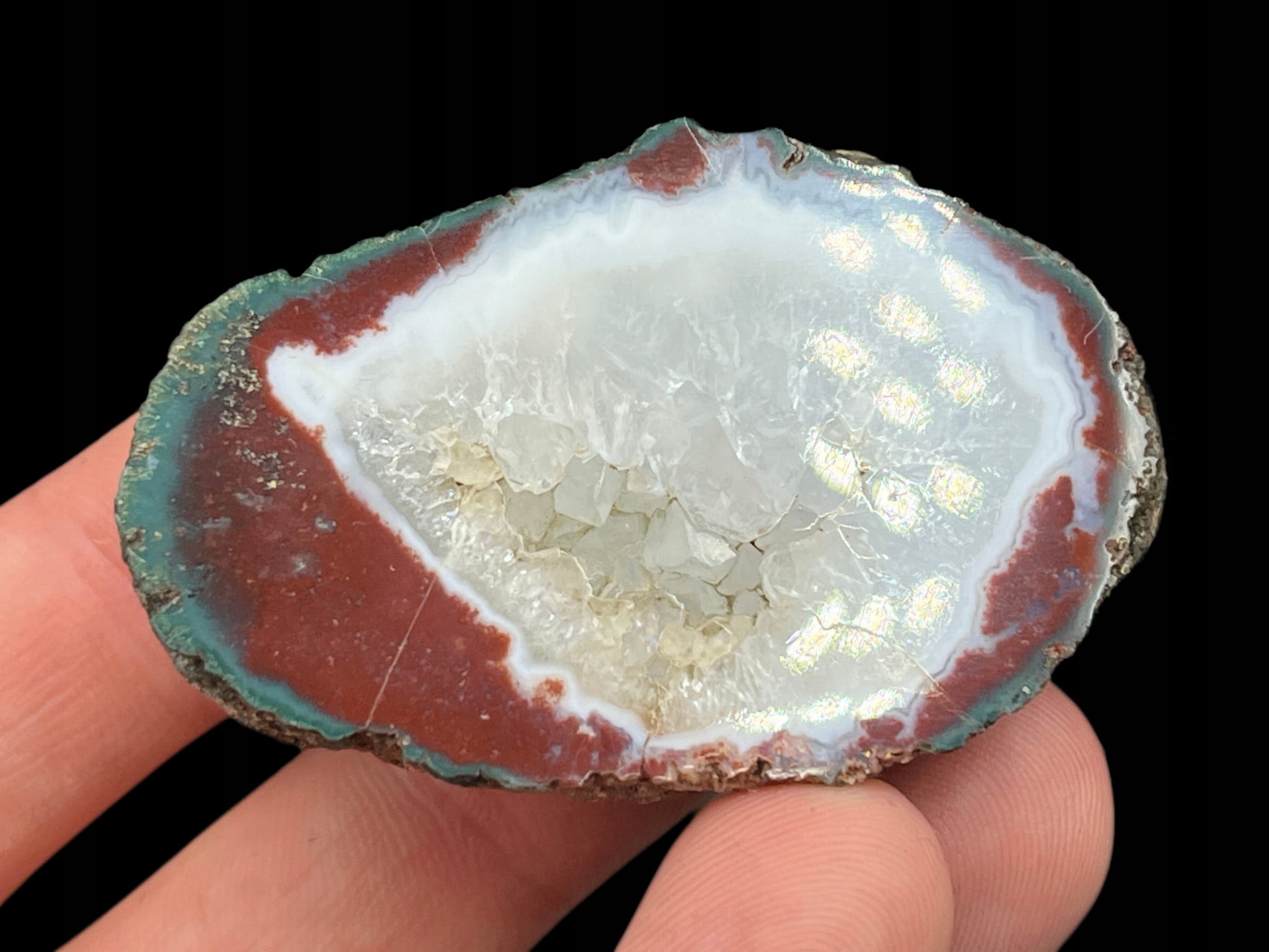 agata - их имя происходит от реки Ахатс, сегодняшнее имя Дирильо с юга Сицилии, в древние времена уже было добывалось. Это полуоценка минерала, разнообразный халседон, сформированный в многопрофильные ленты. Это возникает в рок -пустотах, называемых выжившими. В результате процессов множественной секреции кремнезема из растворов или циклически осаждающего пигмента в силикагеле формируются красочные изготовленные слои с очень разнообразным цветом. Твердость агатов составляет 6,5 - 7 по десятискоростной шкале MOHS. Предлагаемый образец был найден в Малави.