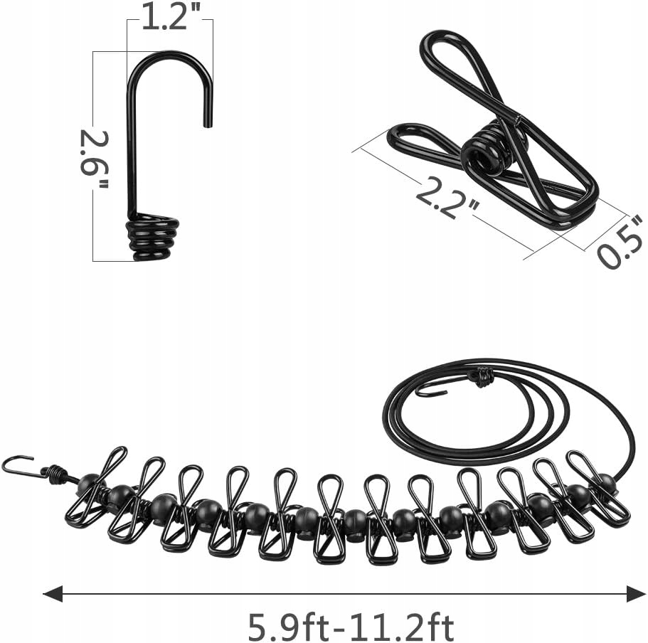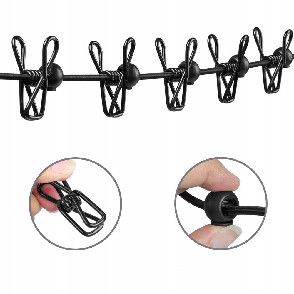 ⚫⚫⚫Веревка с 12 зажимами 13 позиционирующих пряжек Регулируемая длина 180-360 см Для путешествий на природе⚫⚫⚫