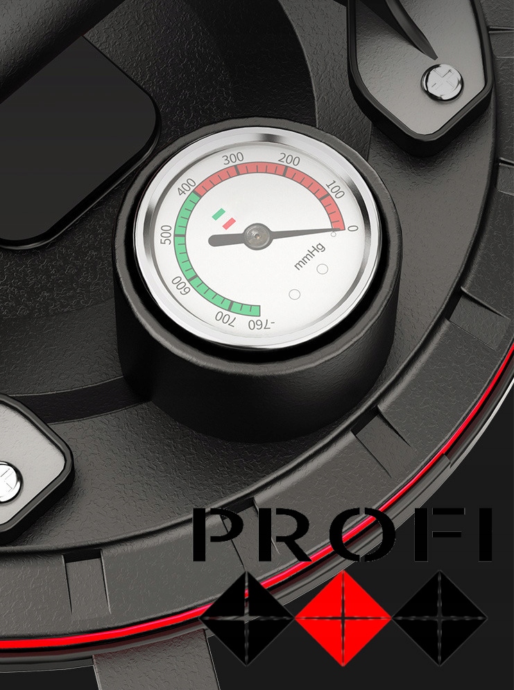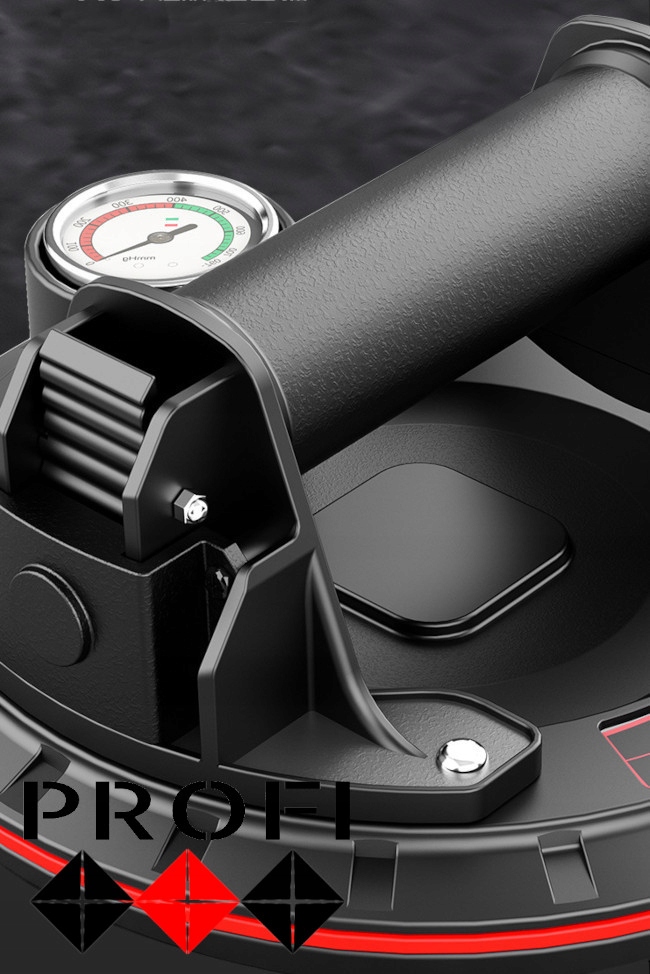 Ручка интегрирована с аналоговым манометром, который позволяет считывать и контролировать давление между резиновой присоской и перемещаемым элементом. Четкая шкала обеспечивает полную безопасность, вы узнаете в любой момент, когда хватка ослабнет и необходимо выкачать воздух.