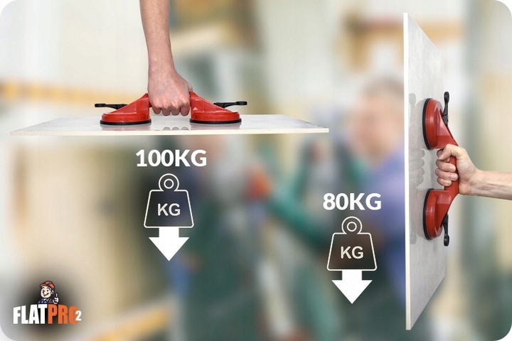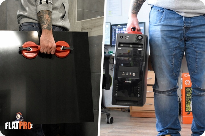 Благодаря FlatPro2 Sucker вы можете легко и просто перемещать ВСЕ хрупкие и громоздкие предметы, например, стекло, плитку или терракоту. Достаточно, чтобы они имели гладкую поверхность.