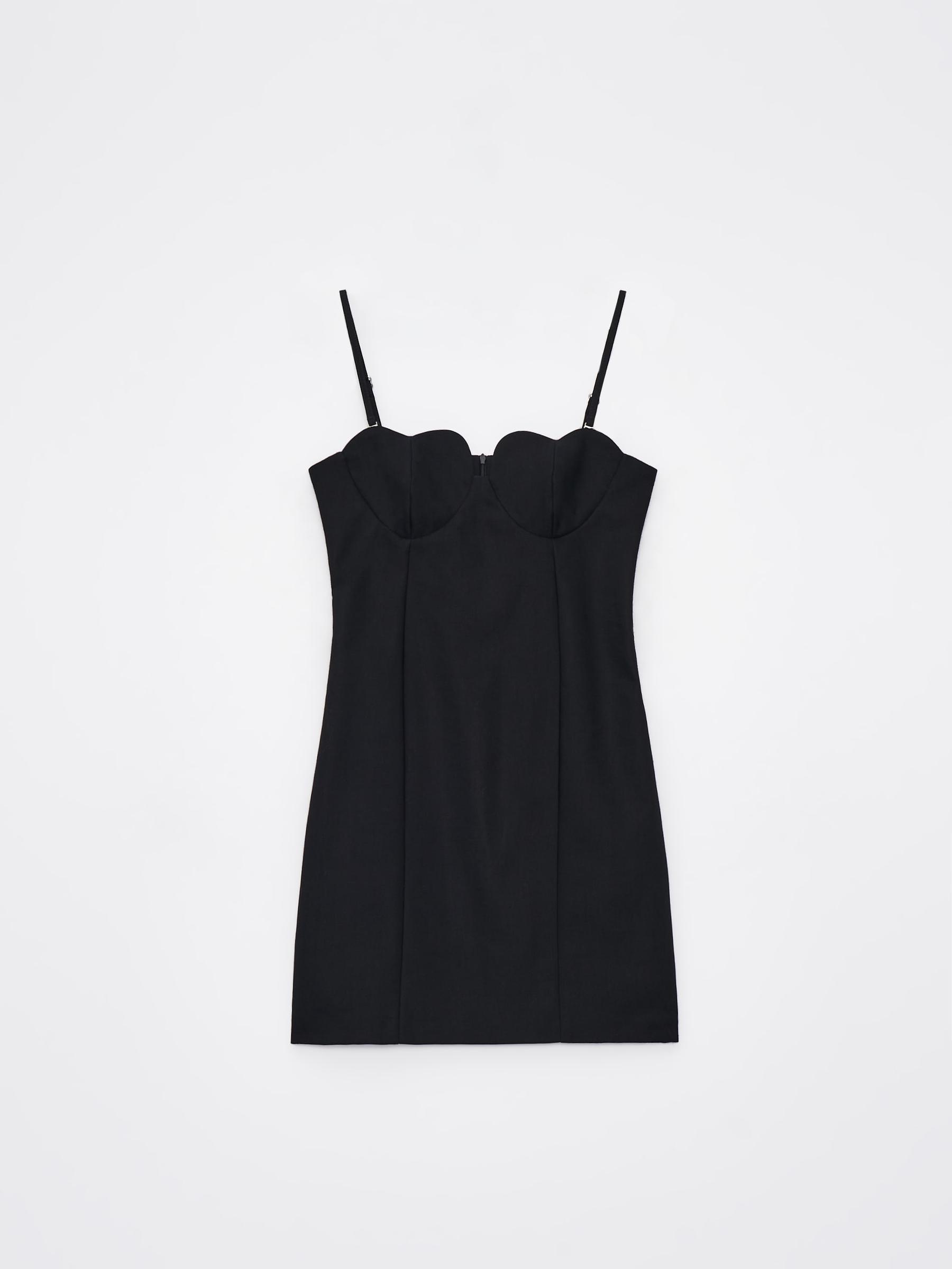 Встроенное черное мини -платье с хлопковыми плечами 40