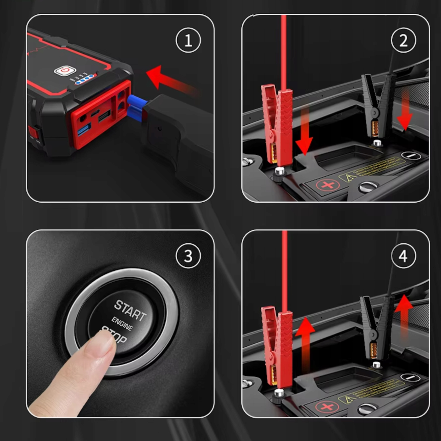 Встроенная батарея: устройство оснащено литий-ионной батареей 59,2WH (16000 мАч), так что вы можете запустить автомобиль на одну зарядку несколько раз