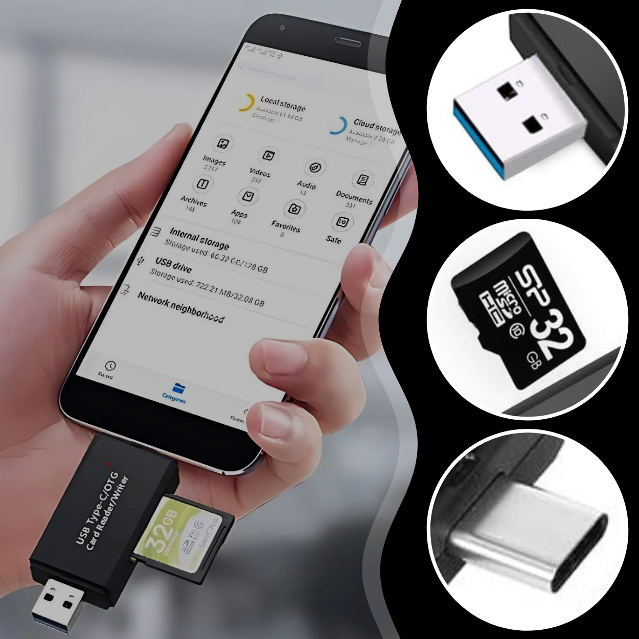 ✅ Целых 5 входов:У устройства 5 различные разъемы, включая USB, USB-C, Micro USB, а также слоты для карт SD и Micro SD, обеспечивающие удобную передачу данных между различными устройствами.