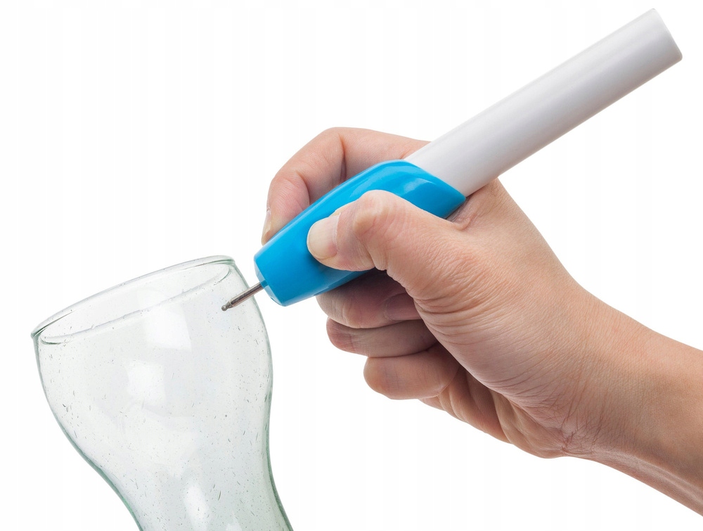 Благодаря своей форме идеально лежит в руке, что позволяет осуществлять точную работу. Кнопка включения расположена там, где мы держим большой палец, что позволяет постоянно контролировать работу устройства. В зависимости от того, что мы хотим выгравировать, мы можем выбрать одну из двух толщин наконечника.