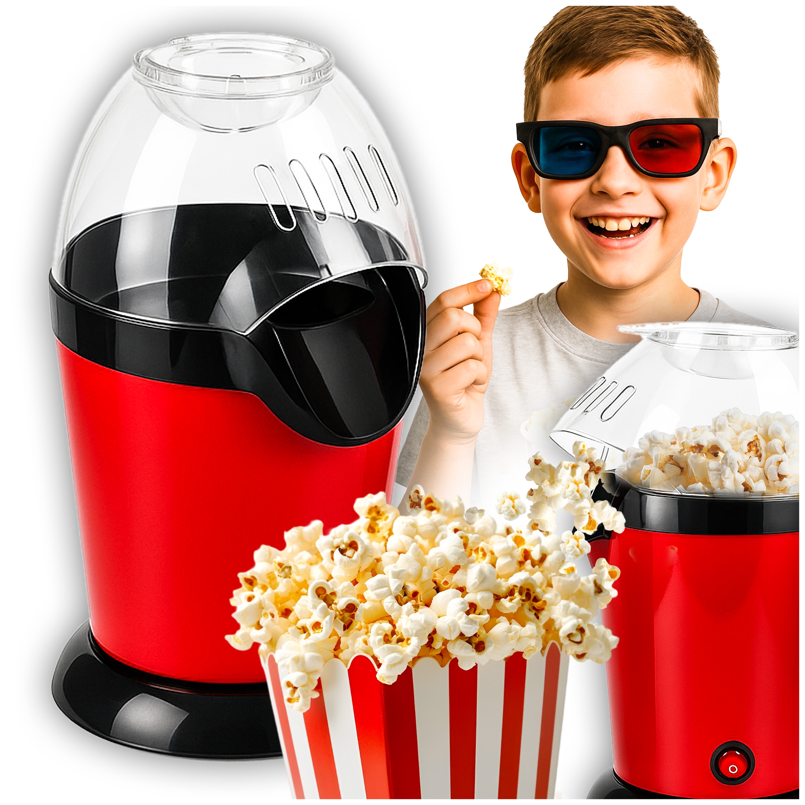 Замените свою гостиную настоящим кинотеатром на домашнюю машину попкорна с вместимостью 900 Вт! Если вы любите хрустящий попкорн, но вы хотите избежать нездоровых жиров и калорий, это устройство для вас. Благодаря расширенной технологии горячего воздуха, вы будете готовить идеальную часть попкорна всего за несколько минут - и без капли нефти!
