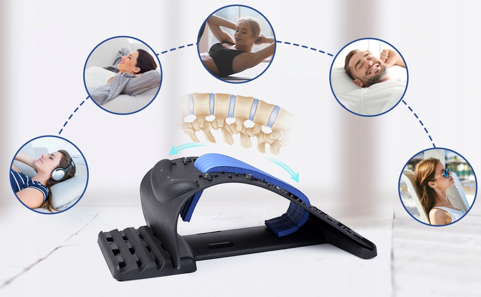 Инструмент для растяжения шеи и спины с магнитами и 4 уровнями h1> на кресле и на земле h1> Размеры: h2>