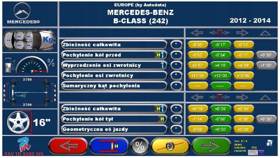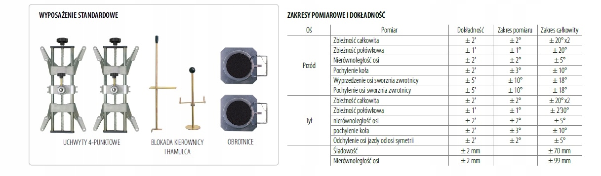 - Все углы, характерные для обеих осей транспортного средства, измеряются 4 измерительными головками, оснащенными 8 датчиками CCD-технологии,