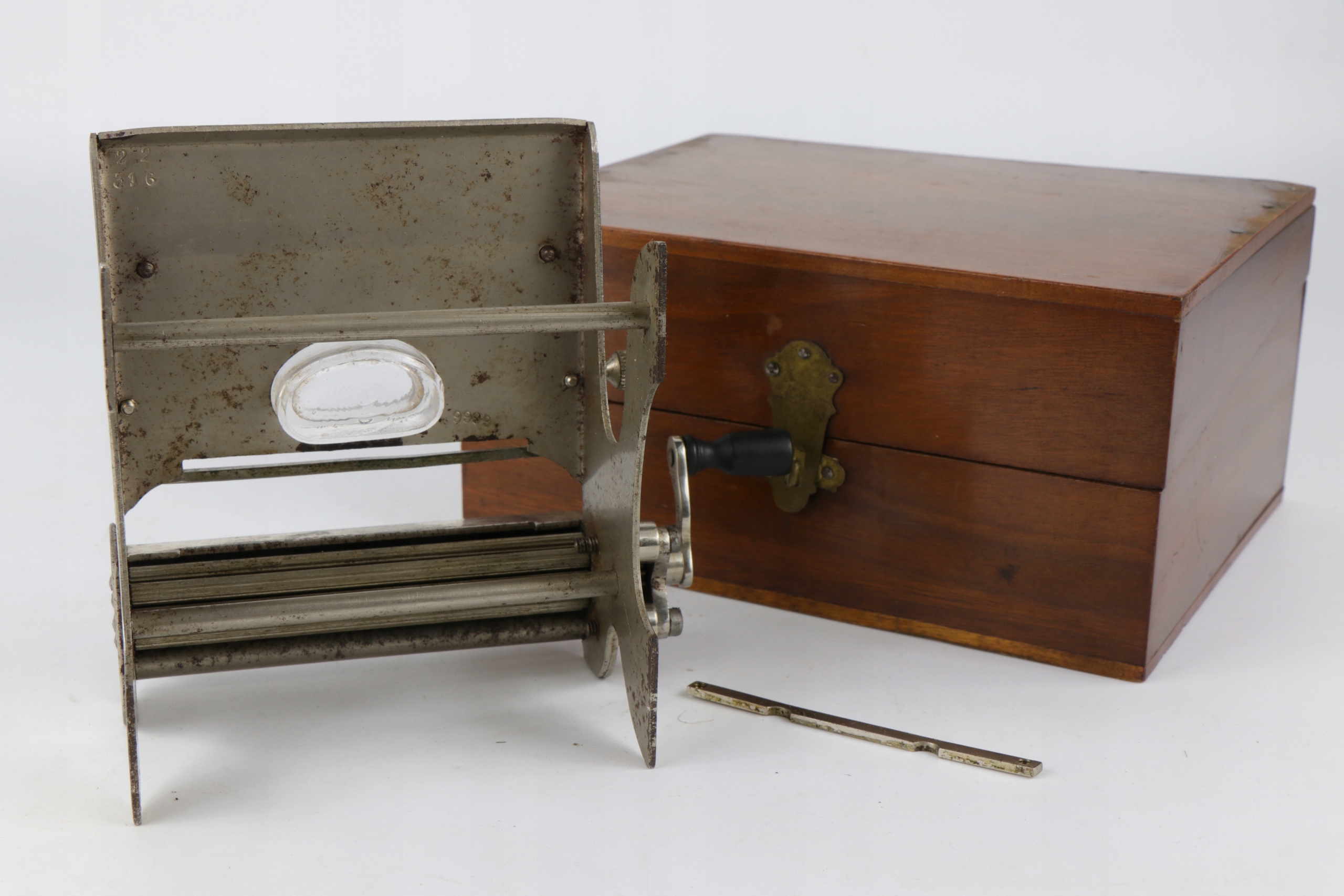 Интересное устройство для скручивания сигарет. Автомат Lemaire model 3 в оригинальной деревянной коробке с двумя оригинальными листовками с одной датой 1885 года (перепечатка информации из газет). Никелированная машина, функциональная, в буклете указано, что она может производить более 200 сигарет в час.