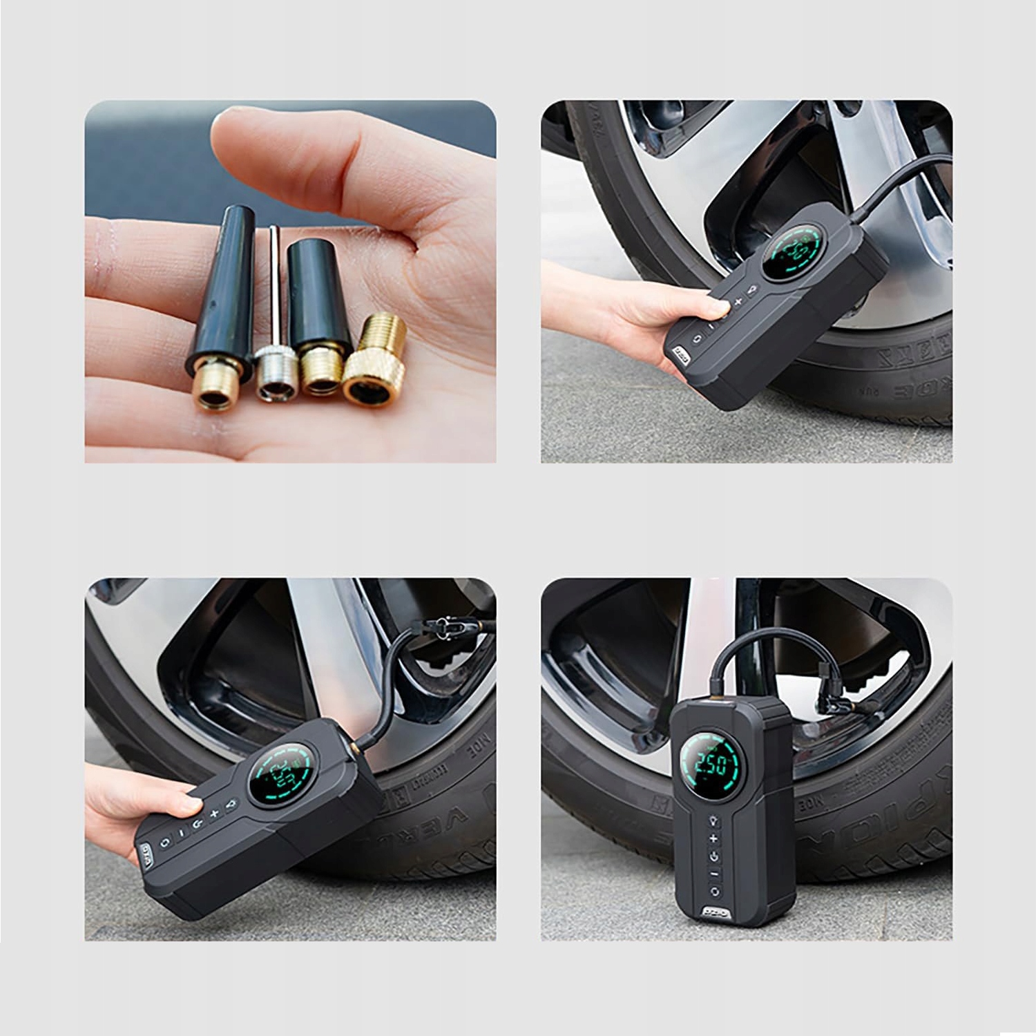 - 🚗- с цифровым ЖК-дисплеем, с функцией обнаружения давления в шинах вы также можете установить желаемое значение, автоматически отключается после достижения давления.
