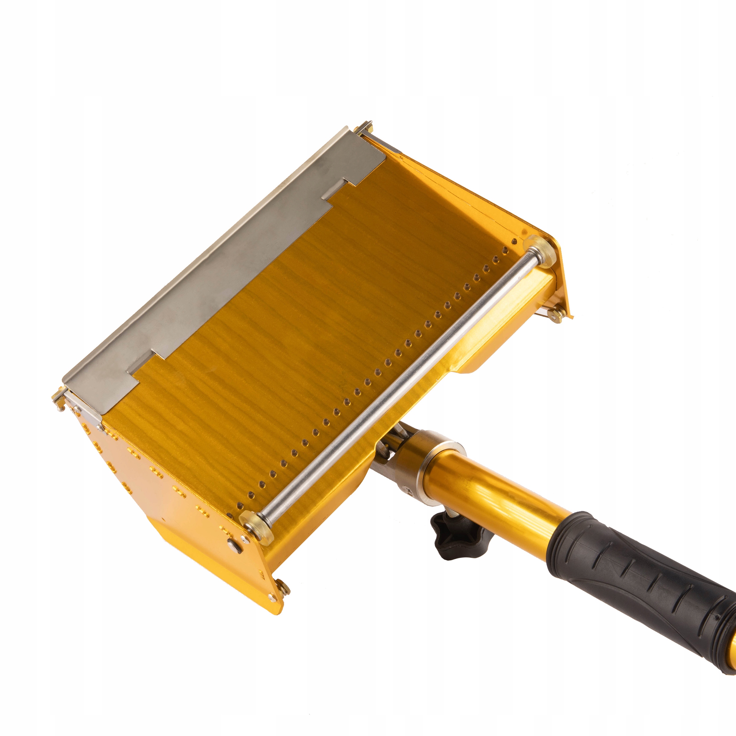 Устройство оснащено приводным колесом, на котором мы запускаем коробку, на другом конце устройства регулируется на нержавеющую сталь, которая сглаживает приложенную массу и