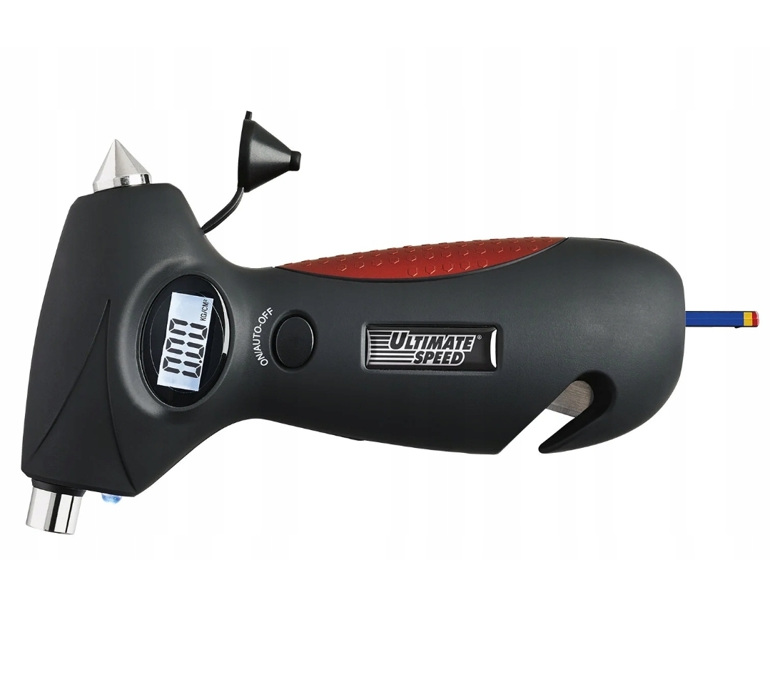 - С 5 практическими функциями: клапан цифрового манометра, светодиодная подсветка, аварийный молоток, нож для резки ремня безопасности, датчик глубины протектора. ;