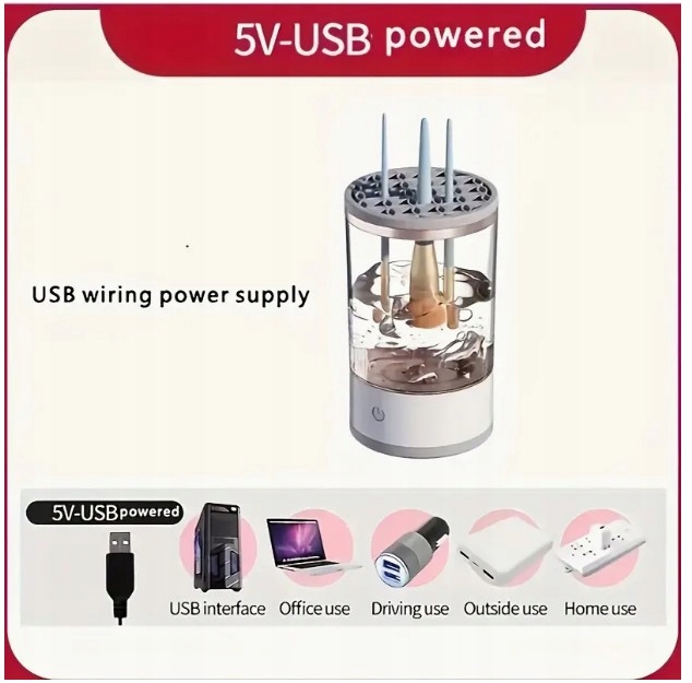 Спроектирован так, что можно мыть несколько кистей одновременно. Ручку маленькой кисточки удобно разместить в силиконовом чехле устройства. Однако рекомендуется чистить большие щетки вручную, аккуратно нажимая на боковые части нижней части устройства или используя дополнительную насадку для чистки.