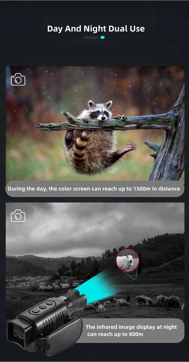 Цифровой монокуляр Naktowizatine с HD -камерой 1080p и 5x цифровой Zoom позволяет наблюдать в полной темноте до 300 метров. Оборудован регулируемым инфракрасным освещением 850 нм и 1,5 -дюймовым экраном TFT, он идеально подходит для ночной охоты, природы или кемпинга.