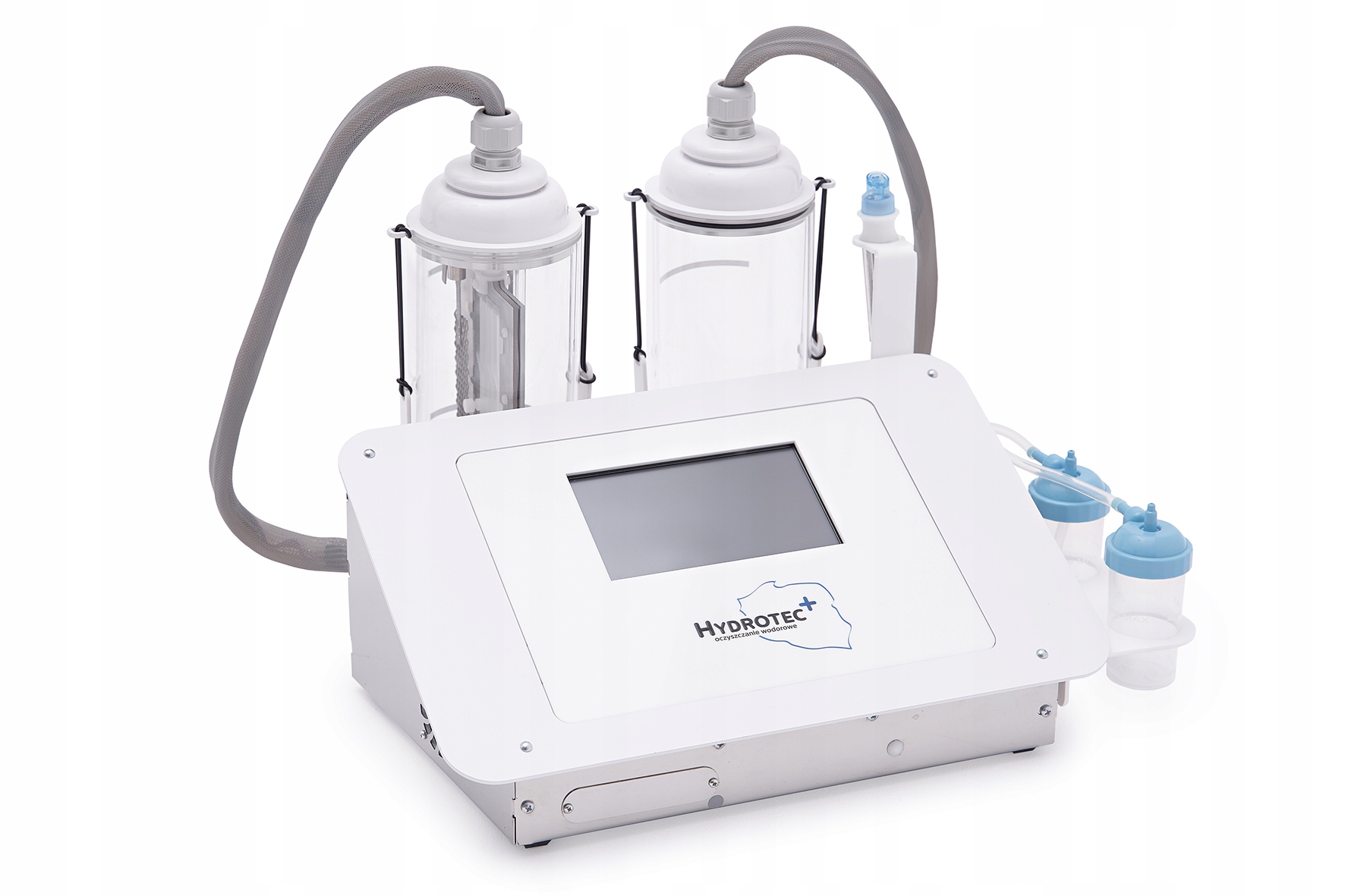 Hydrotec+ — инновационное устройство, основанное на действии активного водорода. Устройство выполняет две функции: очистка водорода и гидрбразия. Основой процедуры является активный водород, вырабатываемый благодаря использованию генератора высокой мощности – 160 Вт. Hydrotec+ удаляет из воды кислород и вредные ионы хлора, серы и фосфора и насыщает ее активным водородом вместе с ионами кальция, магния и калия. Применение этих полезных веществ возможно благодаря создаваемому отрицательному давлению. Таким способом мы добиваемся эффекта отшелушивания внешних слоев эпидермиса. Hydrotec+ предлагает ряд инновационных технологий, которые приносят отличные результаты в процессе ревитализации кожи. Устройство Hydrotec+ успешно использует биофизические свойства активного водорода – сильнейшего антиоксиданта.