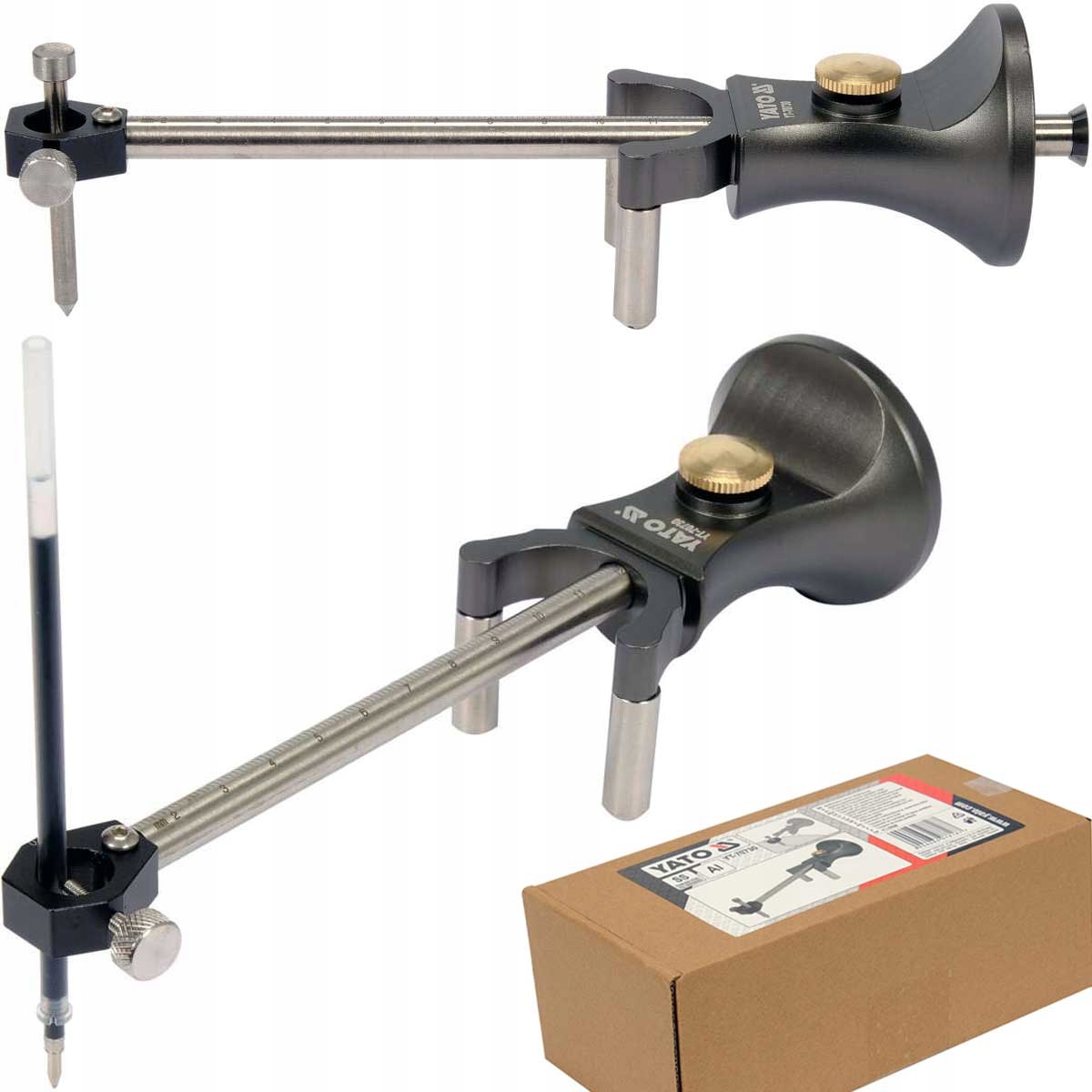 В комплект входят: стилус для разметки линий по металлу, маркер для рисования и твердосплавный круг (для разметки по твёрдым материалам, таким как керамическая плитка, стекло) и запасные винты и 2 гаечных ключа б> .