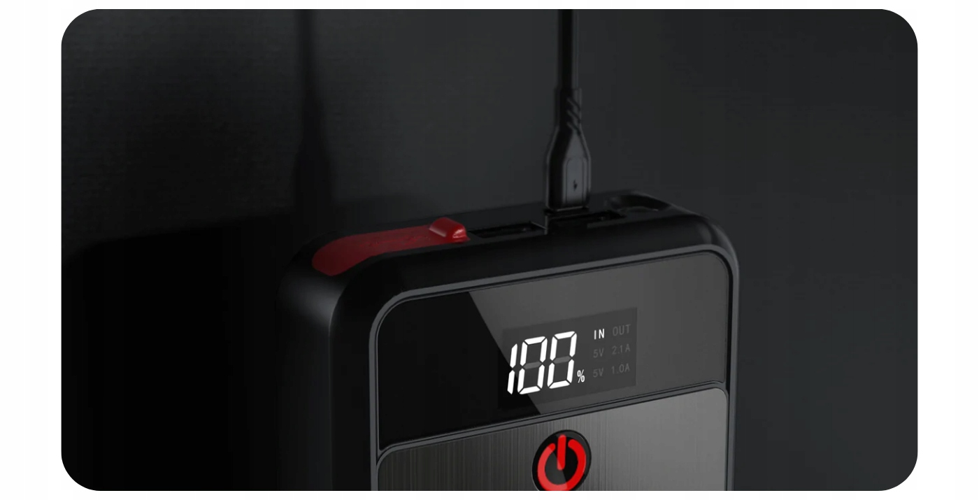 - Встроенный аккумулятор: Устройство имеет встроенный -литий-ионный аккумулятор емкостью 29,6Втч - 8000мАч, что позволяет завести автомобиль до нескольких раз на одном заряде.