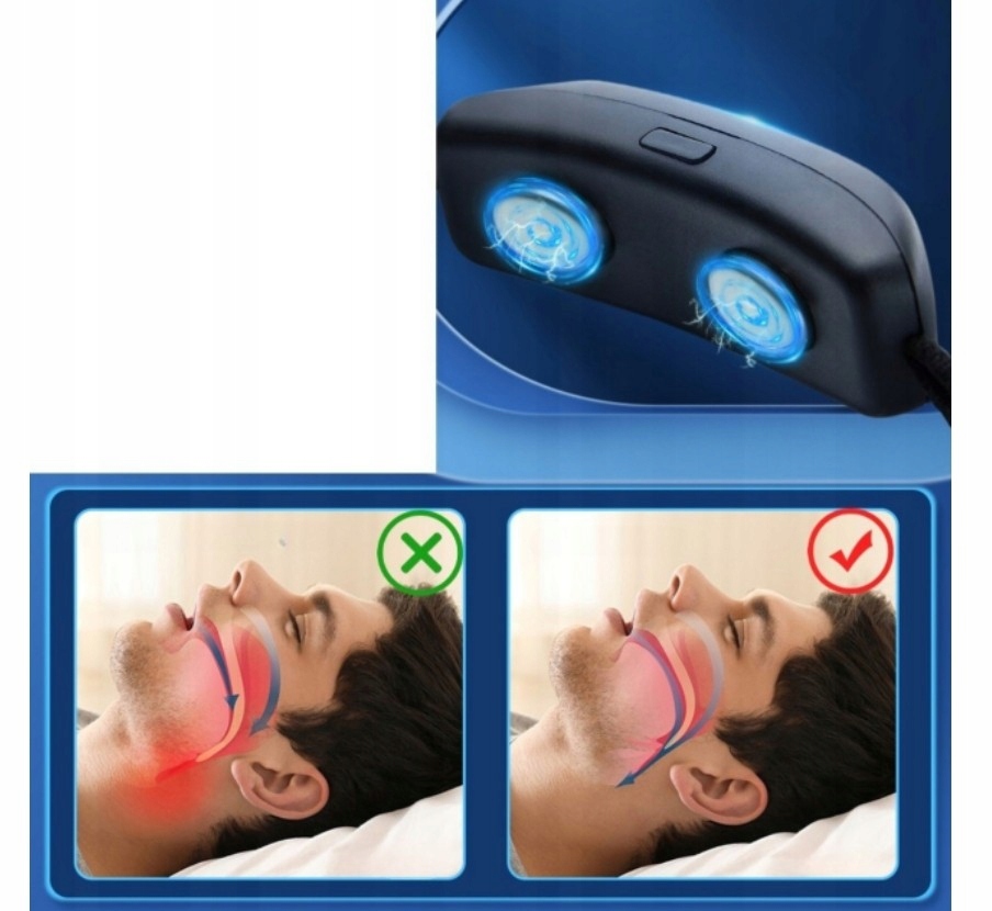 Продукт автоматически и тщательно обнаруживает храп с точными датчиками. Он массажирует нервы и мышцы челюсти вибрирующими импульсами различных частот, чтобы подтянуть мышцы и отрегулировать ритм дыхания. делает дыхание более гладким.