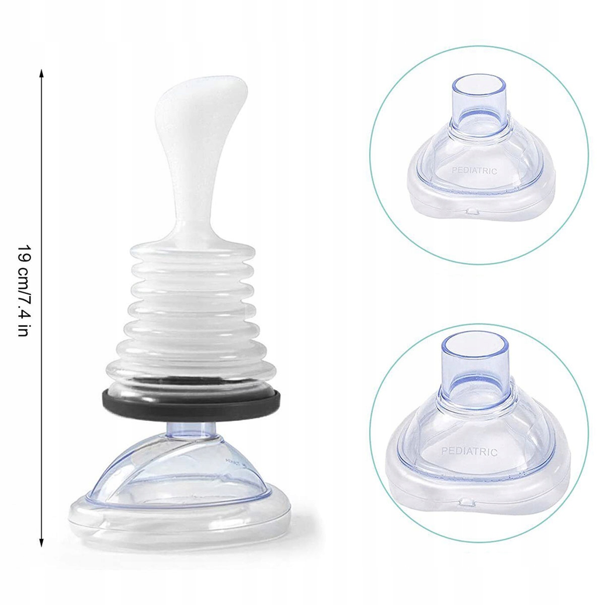 ➡️Наденьте маску на рот и нос пострадавшего. Вставьте ручку. Сильно потяните ручку вверх. Это создает всасывание, и препятствие вытягивается из горла пострадавшего. Время всасывания минимально.