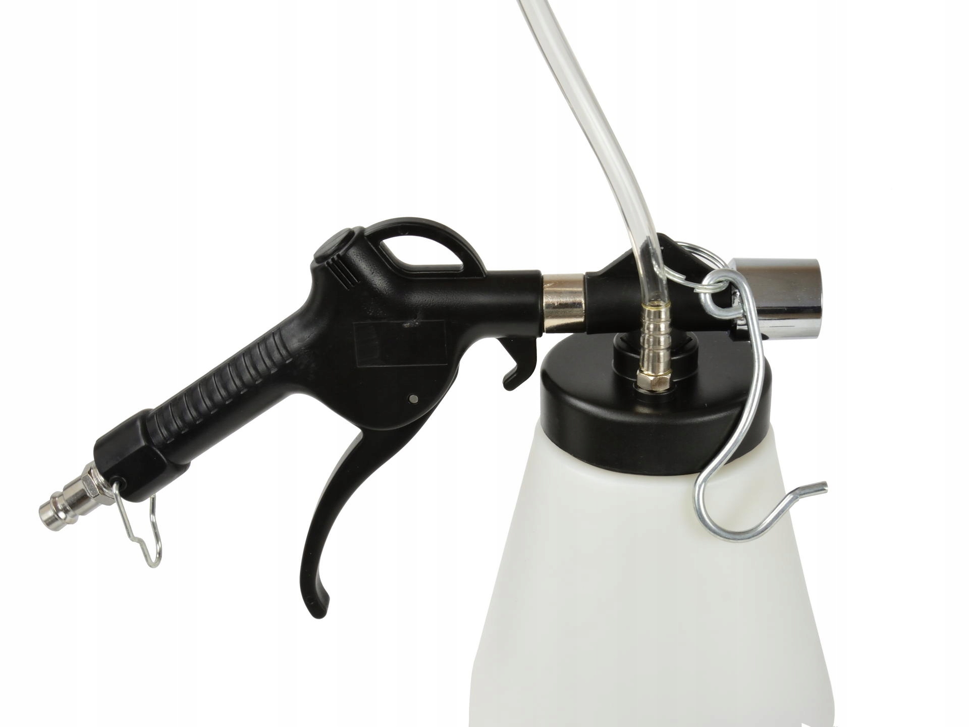 Устройство подключается к сети сжатого воздуха с одной стороны и к прокачному отверстию тормозной системы с другой. Вакуум, создаваемый в баке, вызывает отсасывание жидкости.