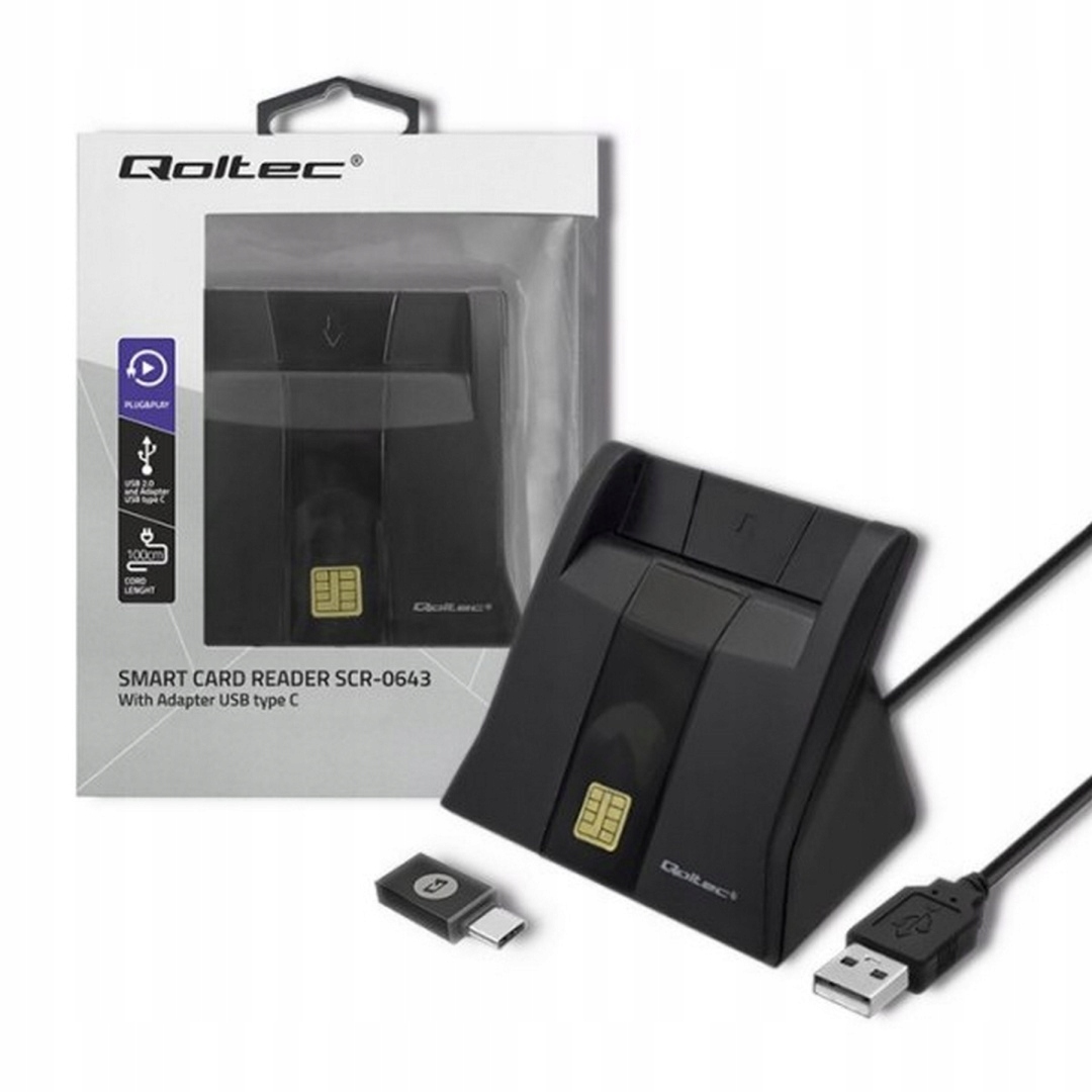 Интеллектуальный считыватель чип-карт Qoltec SCR-0643 | Адаптер USB 2.0 + USB Type C
