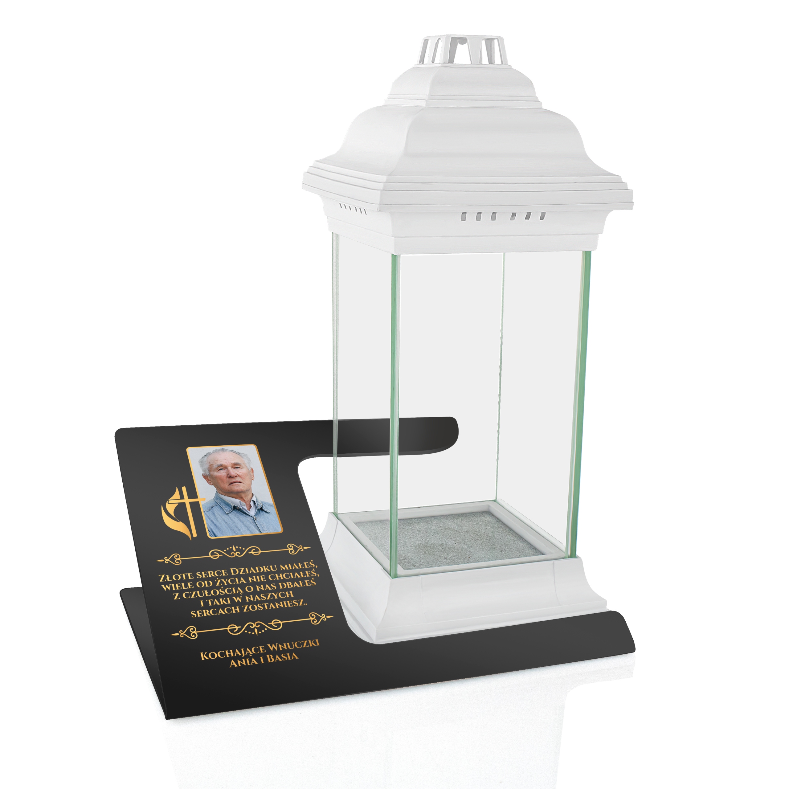 Подставка изготовлена из прочного черного металла, что делает ее достаточно тяжелой и устойчивой, чтобы защитить ее от ветра. Металл был разрезан так, чтобы все стороны были гладко обработаны, а его поверхность была покрыта порошковой краской. На дне установлены пять специальных фетровых накладок, защищающих памятник от царапин. К каждой стойке прикрепляется фонарь, максимальная высота вставки, которая помещается в фонарь, 16 см.
