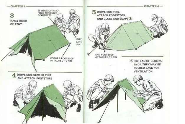 The set consists of the 2nd half of the tent, 6 poles forming frames, 2 tension and 10 tracks The US Army from the time of 2WŚ until the end of the 90s