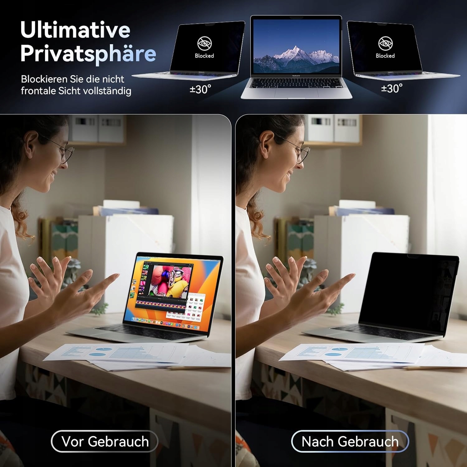 ✅ Угол защиты конфиденциальности: 30 ° Слева и справа