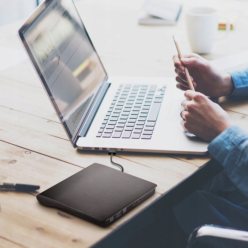 Портативный внешний оптический привод CD/DVD. Для связи с компьютером и подачи питания используются порты USB 3.0! Устройство легко устанавливается. Я использую технологию Plug & Play. Благодаря компактному размеру его можно легко носить с собой.