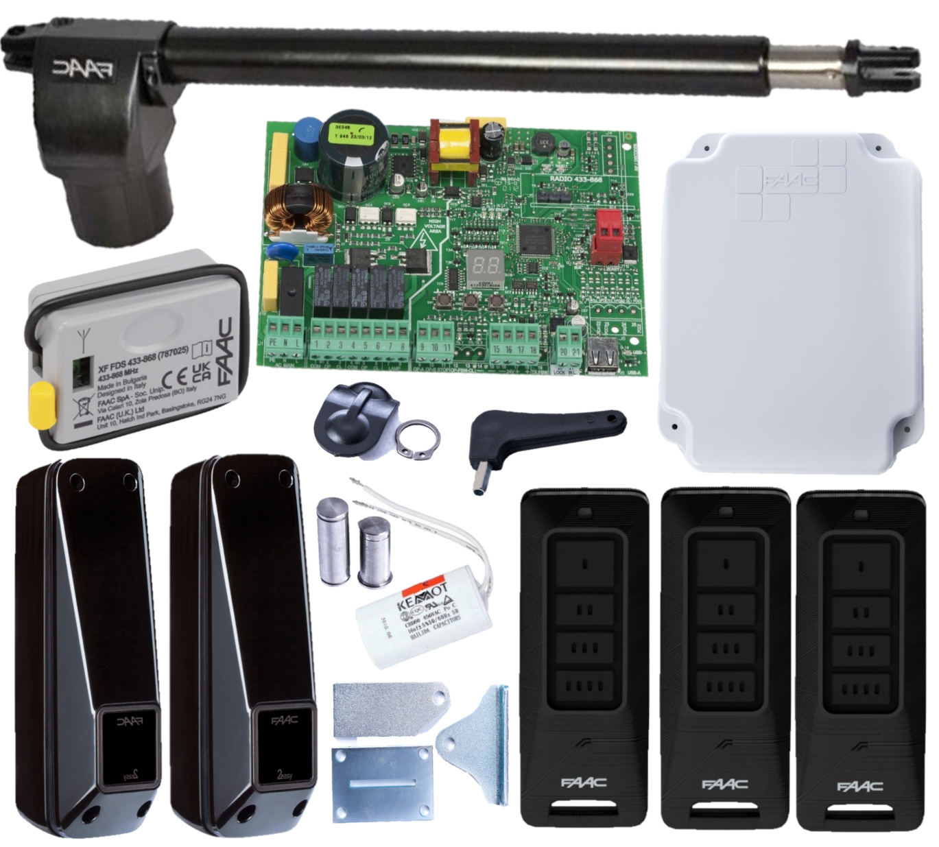 Длинный привод FAAC 414 – идеальное решение для двустворчатых ворот для домашнего использования с длиной створки 4 м (5 м с электрозамком). Он оснащен самоблокирующимся приводом трубки и поэтому не требует использования дополнительных замков. Необходимо установить бамперы.