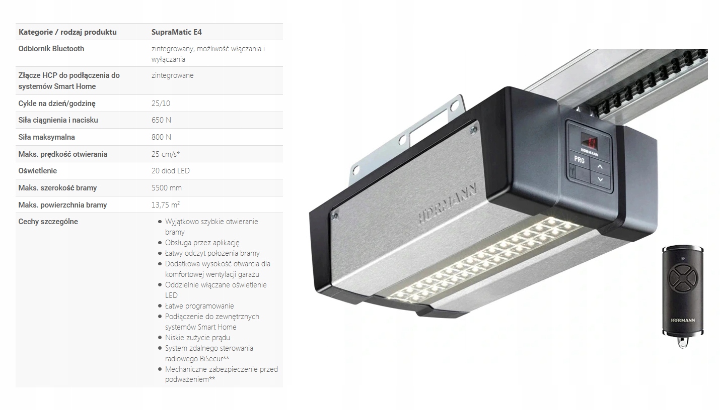 ЭКСПЛУАТАЦИЯ: В КОМПЛЕКТ ВХОДИТ ПРИВОД HÖRMANN SUPRAMATIC E4 С РЕЙКОЙ И ОДНИМ ПУЛЬТОМ ДИСТАНЦИОННОГО УПРАВЛЕНИЯ.