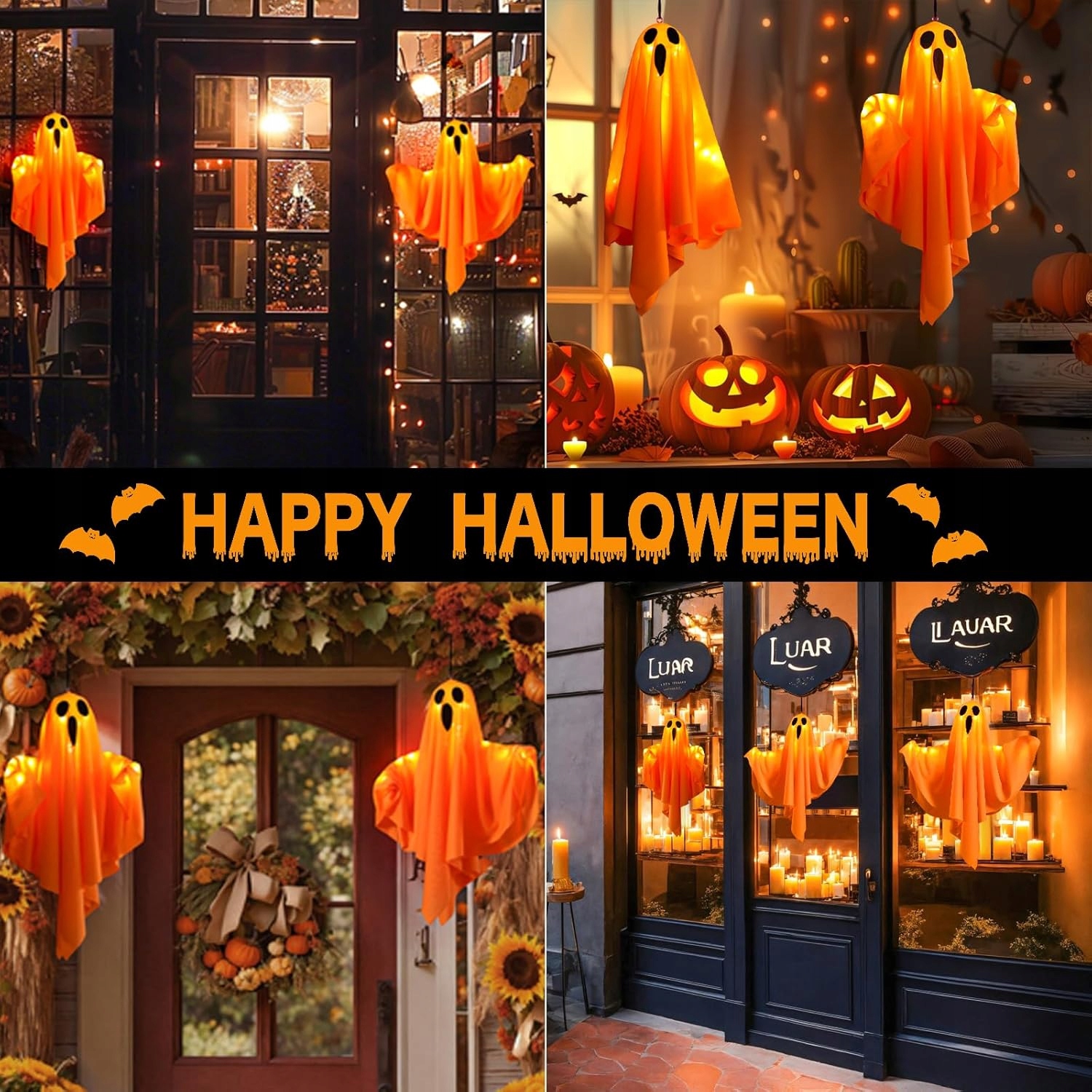 Набор содержит 4 висящих светодиодных украшения в белом и апельсином с размерами 50 х 40 см. Они добавляют очарование и создают волшебную атмосферу, идеально подходящую для Хэллоуина.
