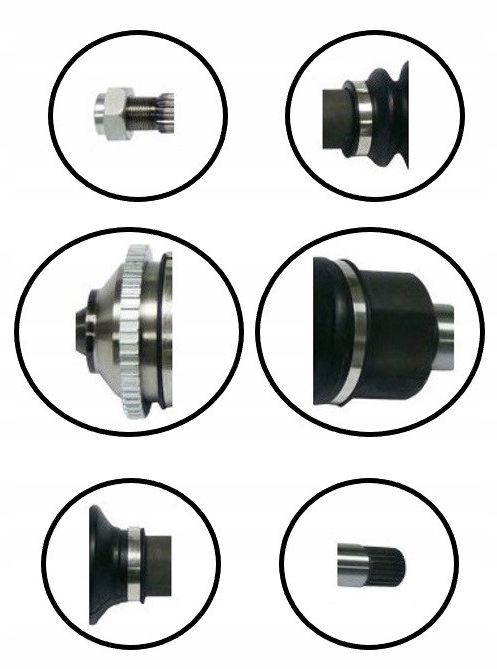 каждый ремонтный комплект включает приводной вал в сборе, состоящий из вала, внешнего и внутреннего гомокинетического шарнира, смазки, неопреновых чехлов, хомутов и гайки (монтажного винта)