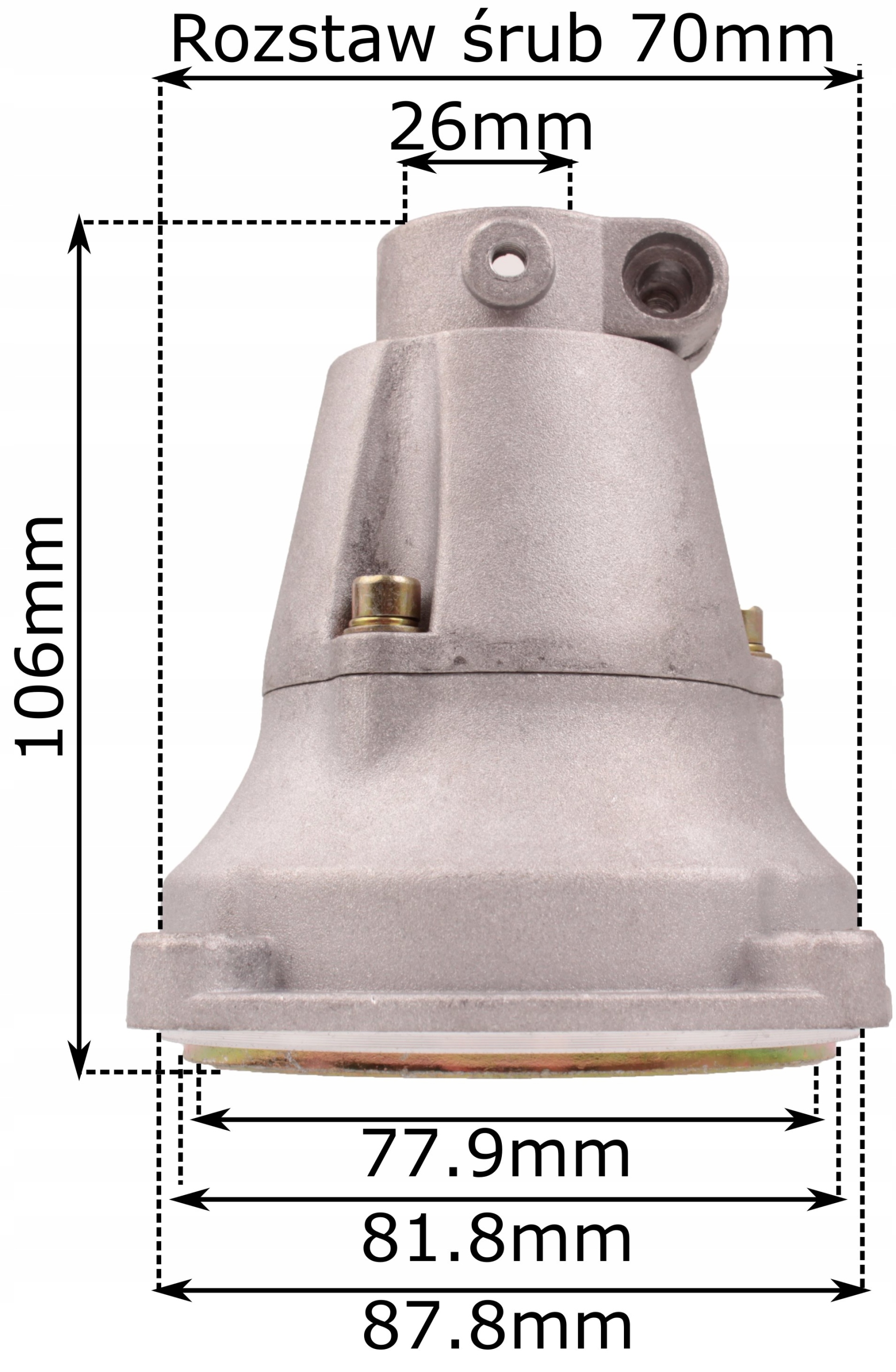 Коннектор ( элемент, соединяющий двигатель косы с трубой) имеет шаг крепежных винтов ~70 мм (измеряется от центра к центру)