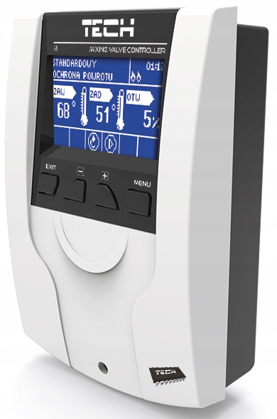 Комплект управления состоит из привода для поворотных смесительных клапанов ARM 343 AFRISO и погодного регулятора TECH I-1. Контроллер оснащен функцией управления погодой и недельной программой. Он может работать с комнатным регулятором. Важной функцией регулятора является защита котла от слишком низкой температуры воды, возвращающейся из установки. Это защищает котел от коррозии, повышает его эффективность и продлевает срок службы. Контроллер также реагирует на превышение максимально заданной температуры источника тепла аварийным сбросом избыточного тепла на установку. Комплект дополнительно оснащен всеми необходимыми датчиками температуры и кабелями питания.