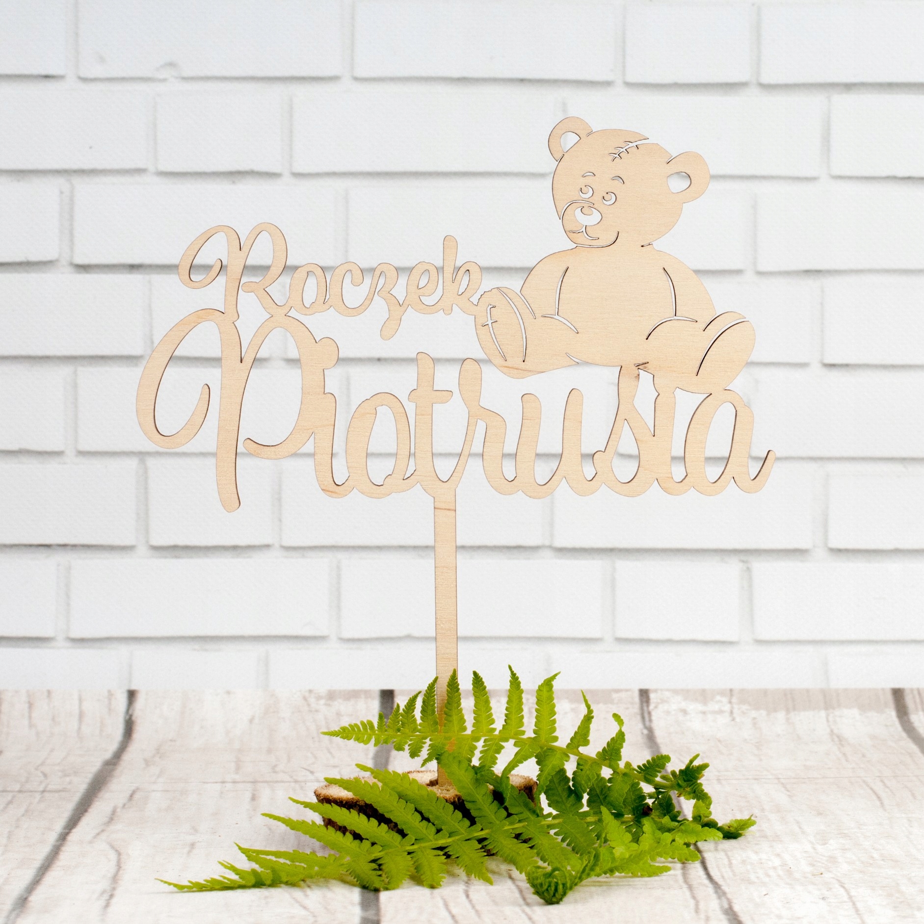 В форме заказа укажите измененное имя, которое будет размещено на топпере (например, Кубусь годовалого возраста).
