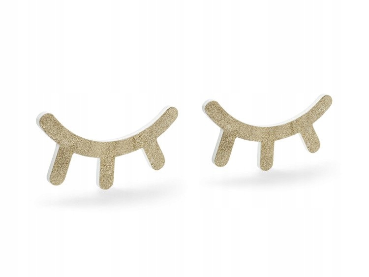 Деревянное настенное украшение в виде спящих глаз, белое с золотым блеском спереди.
