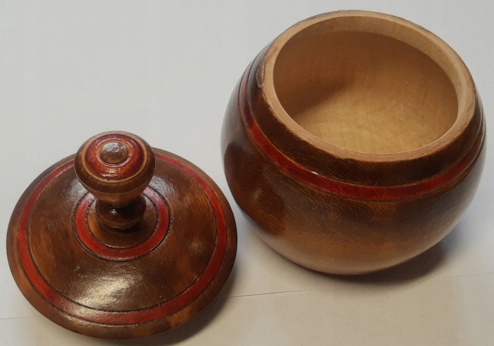 PRL - ДЕРЕВ'ЯНА ДЕКОРАТИВНА ШКАЛУДНЯ ДЛЯ ПРИКРАШЕНЬ - КРУГЛА З КРИШКОЮ