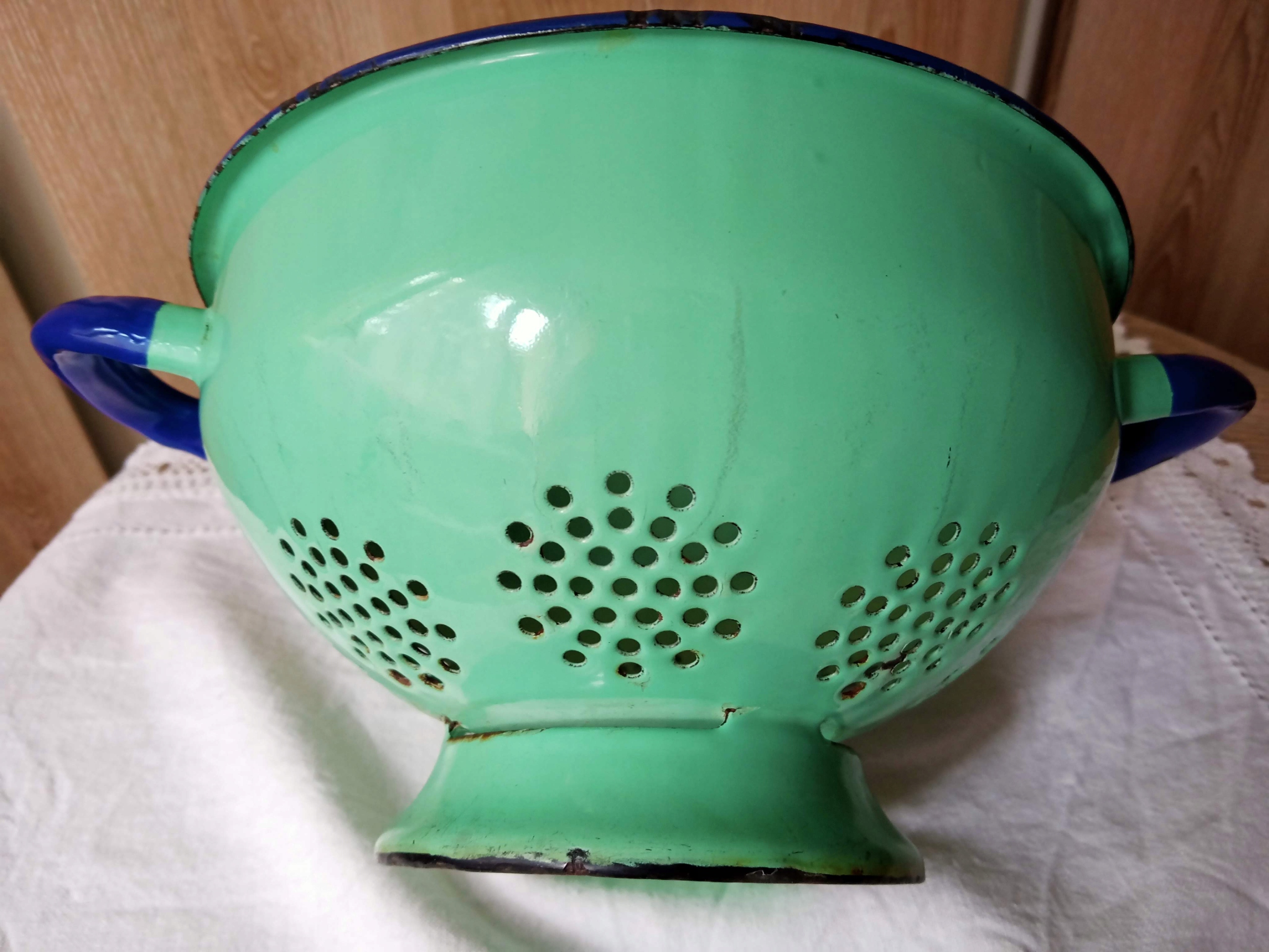 Красивый дуршлаг времен Польской Народной Республики, со следами использования, как на фотографиях.