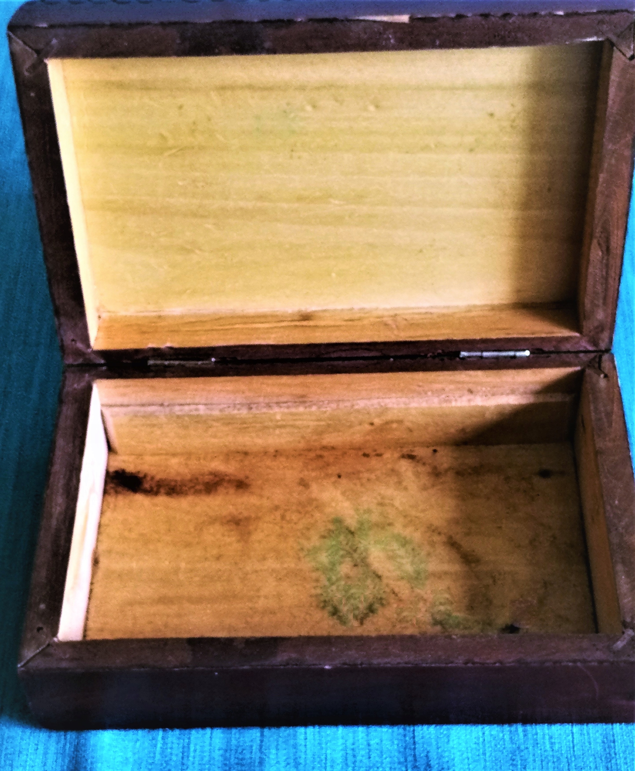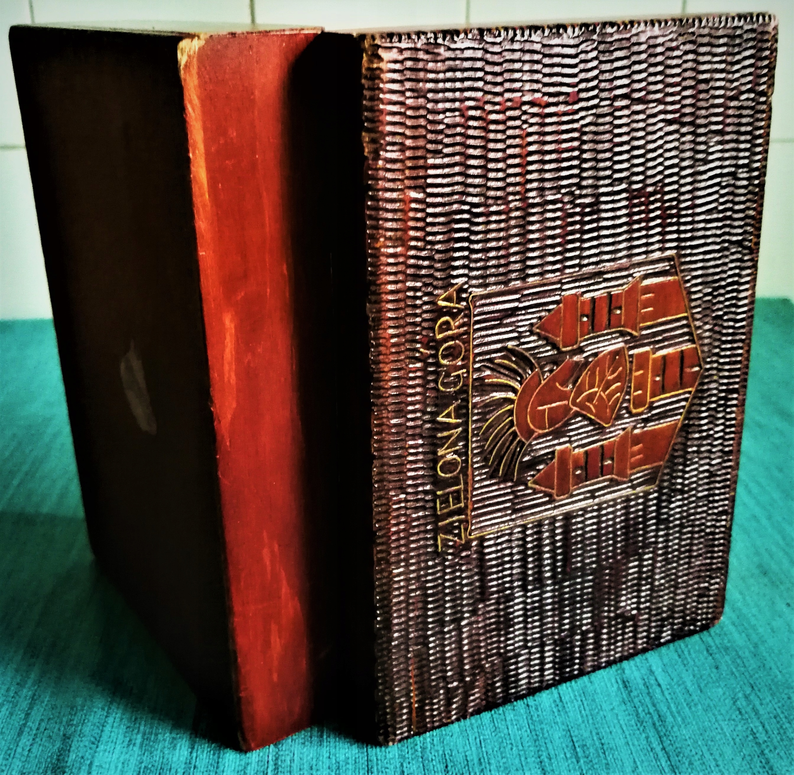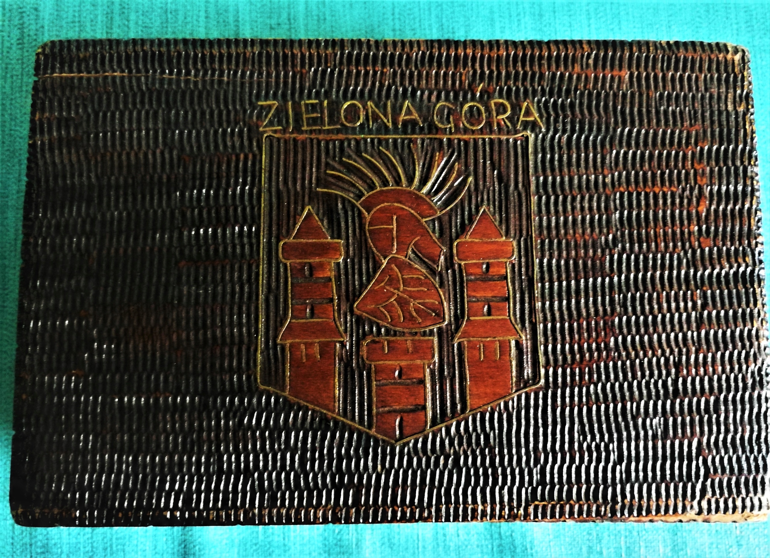 шкатулка был использован. Снаружи в очень хорошем состоянии. Внутри окрашивания. Сделано из резного дерева, украшенная гербами Зилоны Горы. Контуры и надпись из золотого металла