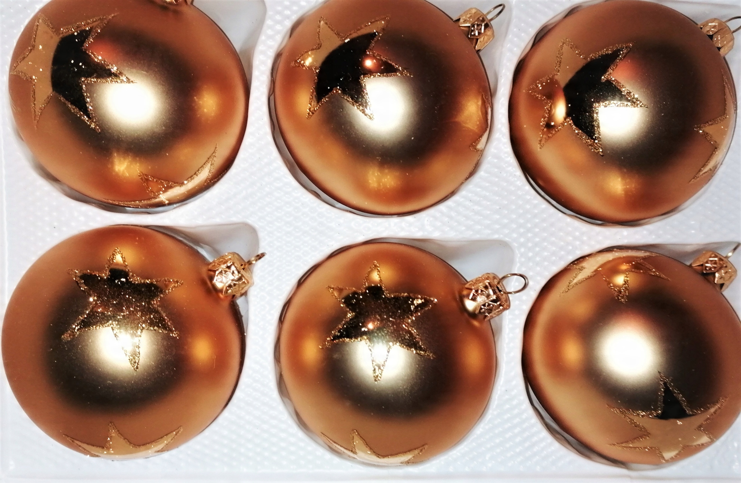 Золотые, круглые, атласные, украшенные золотыми, блестящими звездами, их контур покрыт с золотым блеском