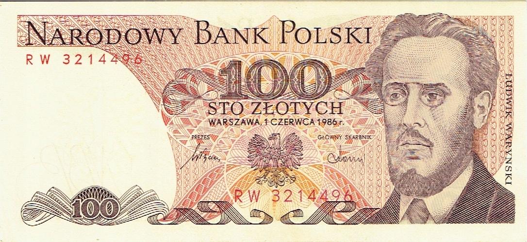 100 Zlotys, Warsaw, 1 июня 1986 г. RW 3214496. Не изгиб. Нет сбоев.