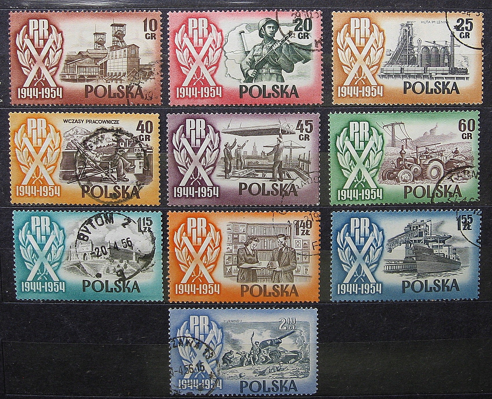 ПРЛ. Фи.747 - 756. 10-летие Польской Народной Республики.