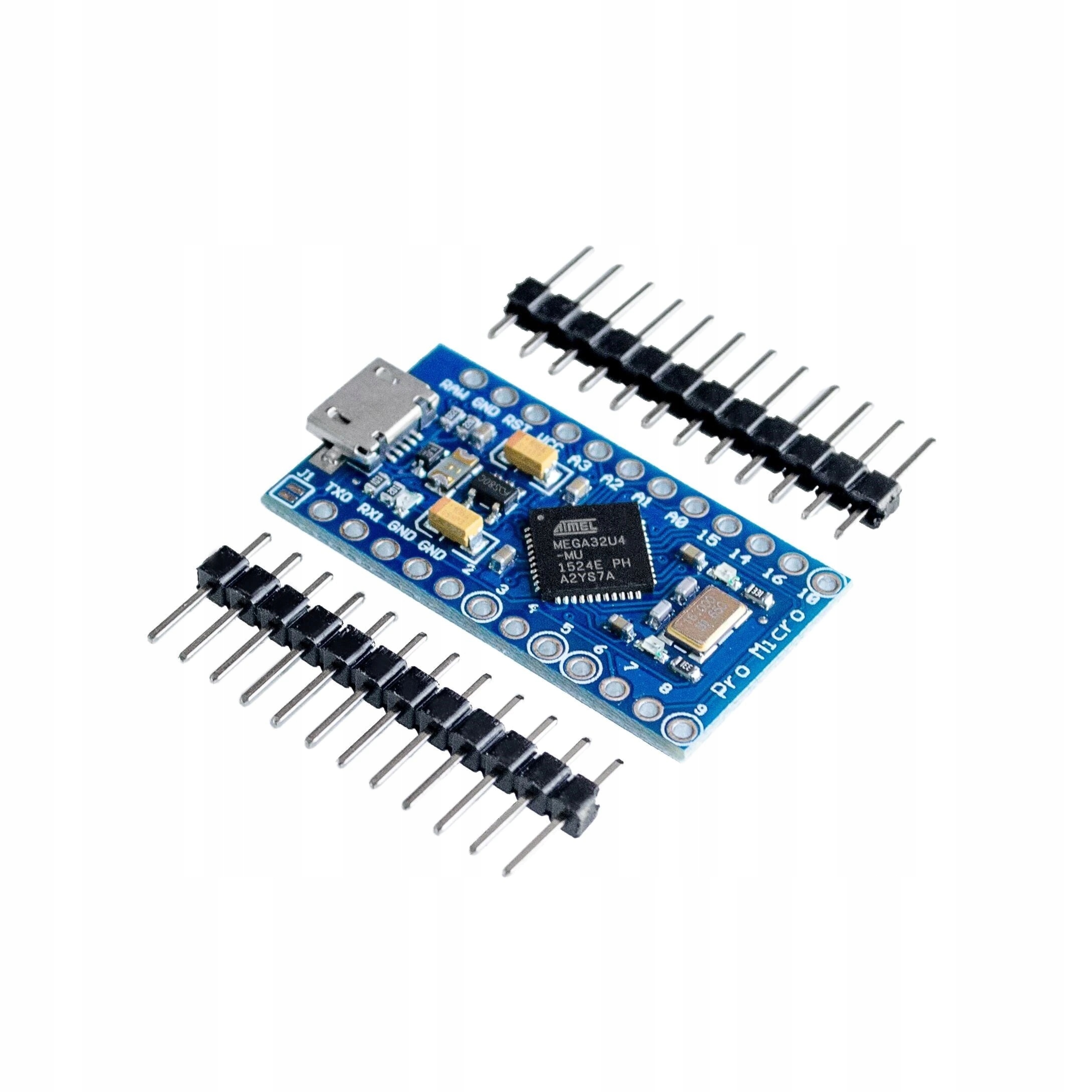 Klon Pro Micro — одна из самых маленьких плат из семейства Arduino-совместимых систем. На печатной плате появилась система ATmega 32U4, пришедшая на смену старой ATmega328p. Благодаря этому у нас есть доступ к более новой архитектуре процессора, но, прежде всего, мы можем использовать аппаратную поддержку USB. Производитель устранил необходимость размещения последовательного преобразователя (например, CH340), благодаря чему плата стала намного меньше популярной Nano.
