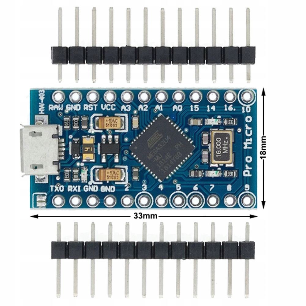 - Микроконтроллер: ATmega32U4