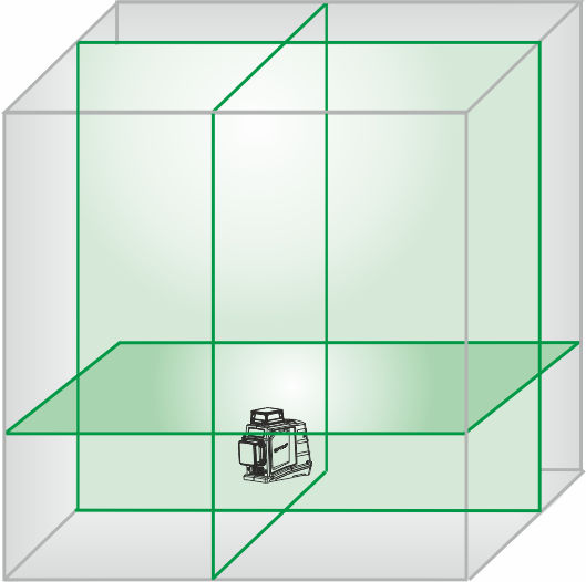 - LK- Многолинейный лазер 360.3 DG генерирует три плоскости 360°, одну горизонтальную и две вертикальные плоскости, пересекающиеся под углом 90°.