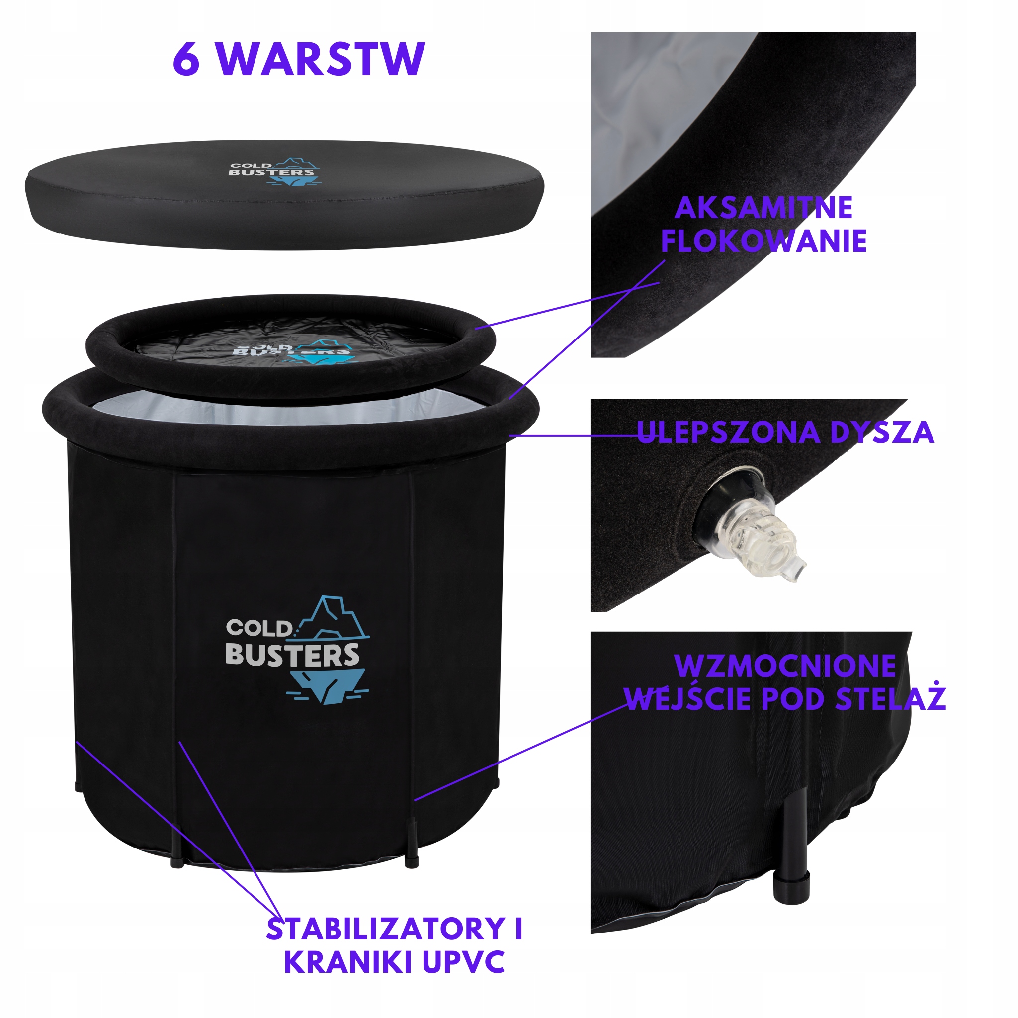Z Cold Busters вы сможете насладиться преимуществами зимнего купания в любое время года. Независимо от того, являетесь ли вы заядлым спортсменом или только начинаете свое приключение с холодными ваннами, Cold Busters — это продукт, созданный специально для вас.
