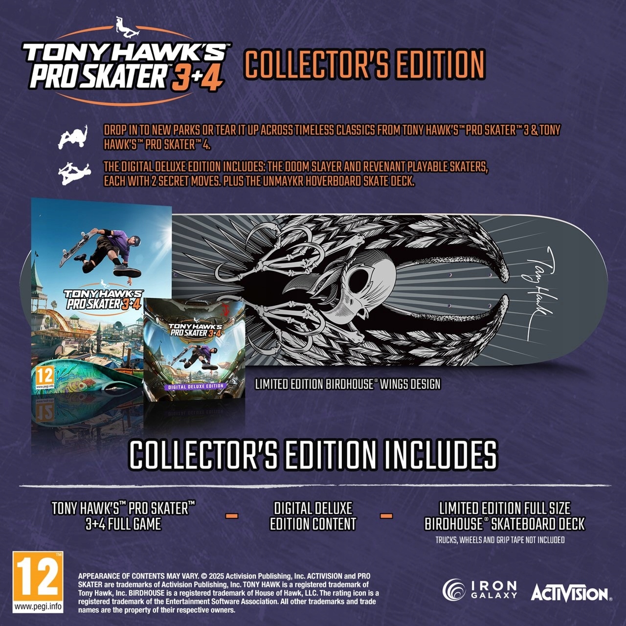 Приходите к Tony Hawk's Pro Skater ™ 3 + 4 с этим эпическим коллекционером. Этот набор включает в себя Tony Hawk's Pro Skater ™ 3 + 4, цифровое контент Deluxe Edition и полный скейтборд Birdhouse® с возобновляемой версией Aconic Wings Graphics с автографом автографа Tony Hawk Printed.